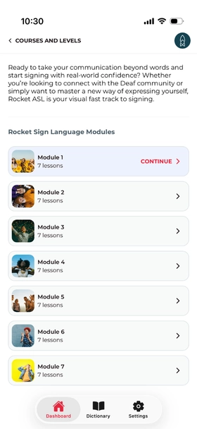 A lot of other courses out there take a cookie-cutter approach, using the same template for every language they teach. At Rocket, we understand that no two languages are exactly alike! That's why we've carefully crafted Rocket Sign Language to include what's practical, relevant, and useful for the language you are learning.